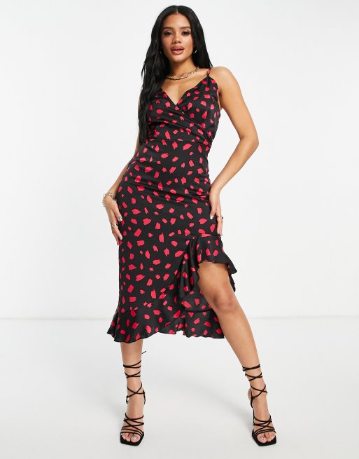 Girl In Mind – Czarna sukienka z falbanką w różowy wzór
