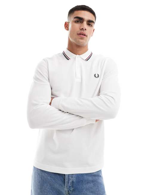 Fred Perry – Biała koszulka polo z długim rękawem i podwójną lamówką