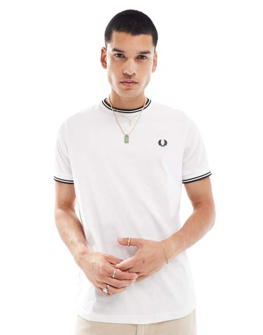 Fred Perry – Biała koszulka z podwójną ozdobną lamówką