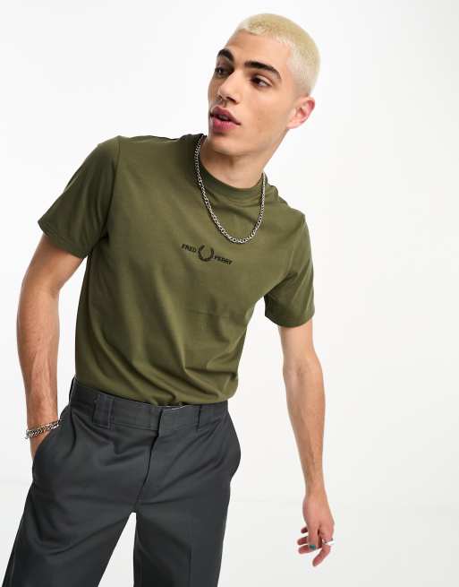 Fred Perry – Ciemnozielony T-shirt z haftem