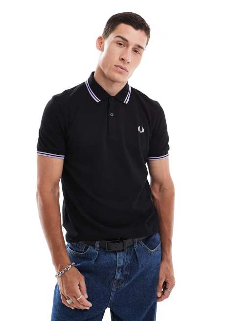 Fred Perry – Czarna koszulka polo z kontrastowymi lamówkami z dwoma paskami