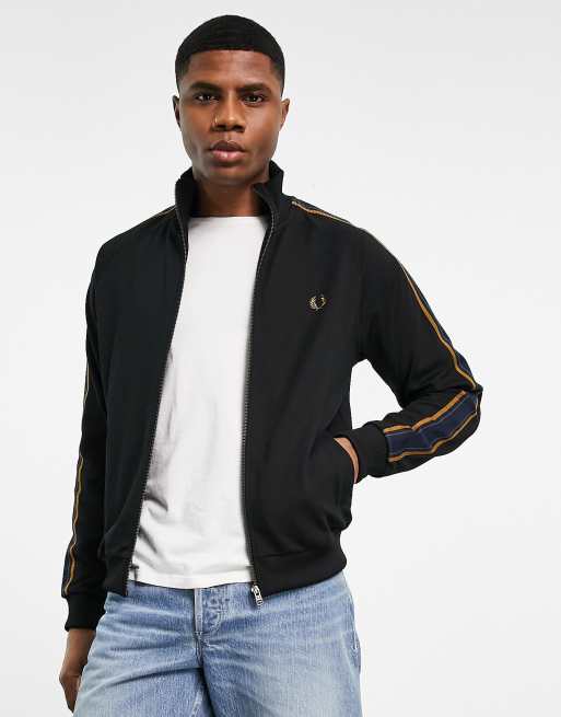 Fred Perry – Czarna kurtka dresowa z lampasami