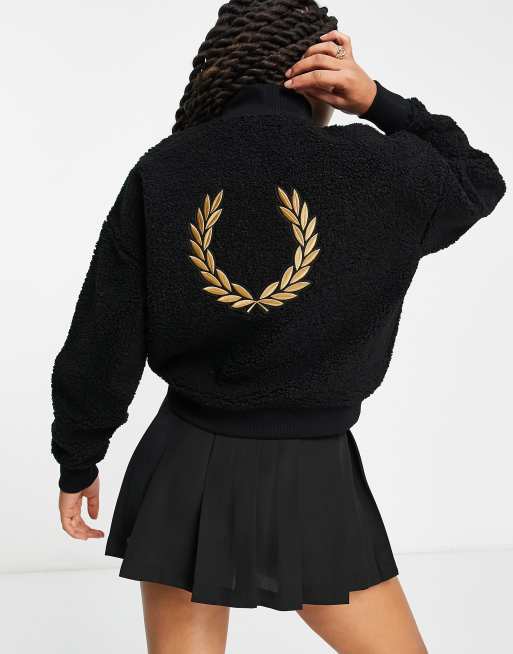 Fred Perry – Czarny sweter z zamkiem pod szyją i motywem wieńca laurowego na plecach