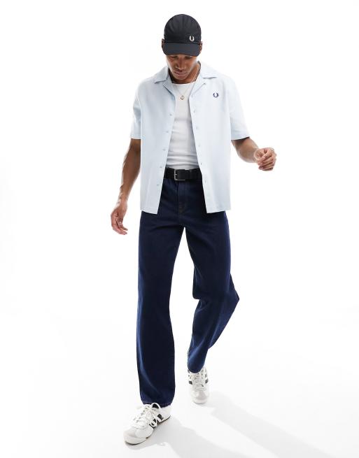 Fred Perry – Jasnoniebieska koszula z piki z kołnierzykiem kubańskim