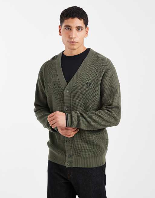 Fred Perry – Kardigan o waflowej fakturze w kolorze khaki