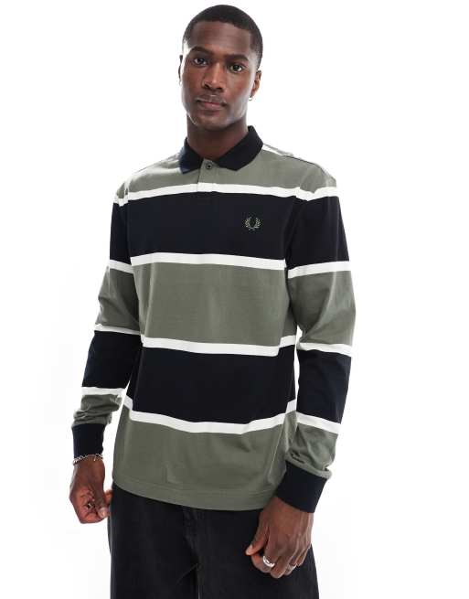 Fred Perry – Koszulka polo z długimi rękawami w szerokie zielono-czarne pasy