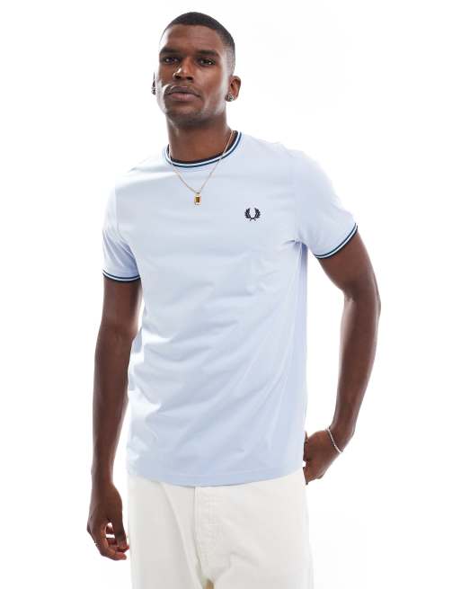 Fred Perry – Niebieski T-shirt z podwójną lamówką