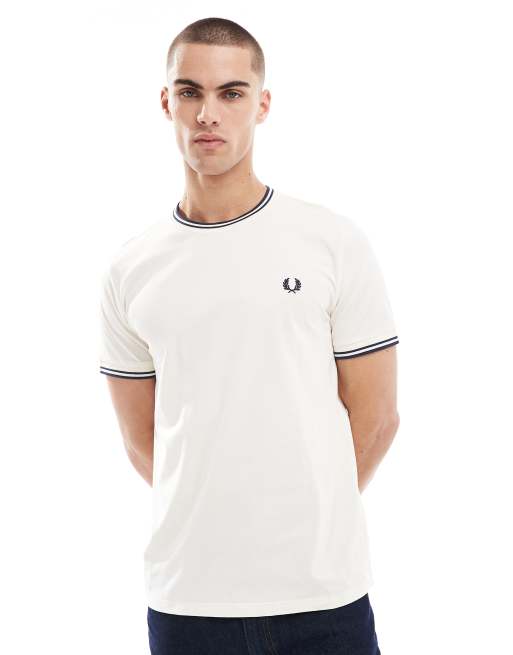 Fred Perry – T-shirt w kolorze złamanej bieli z podwójnymi lamówkami