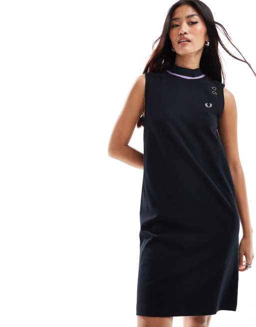 Fred Perry x Amy Winehouse – Czarna sukienka T-shirtowa bez rękawów