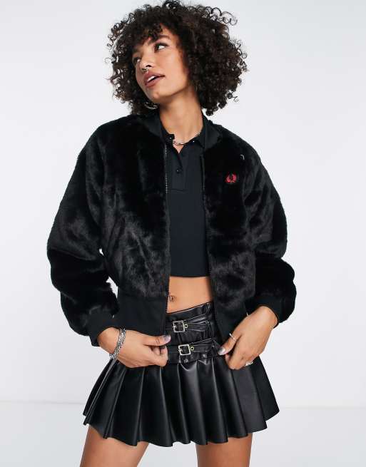 Fred Perry x Amy Winehouse – Kurtka bomberka ze sztucznego futra z motywem serca