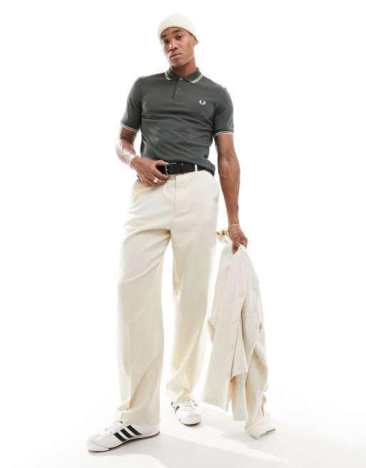 Fred Perry – Zielona koszulka polo z podwójną lamówką