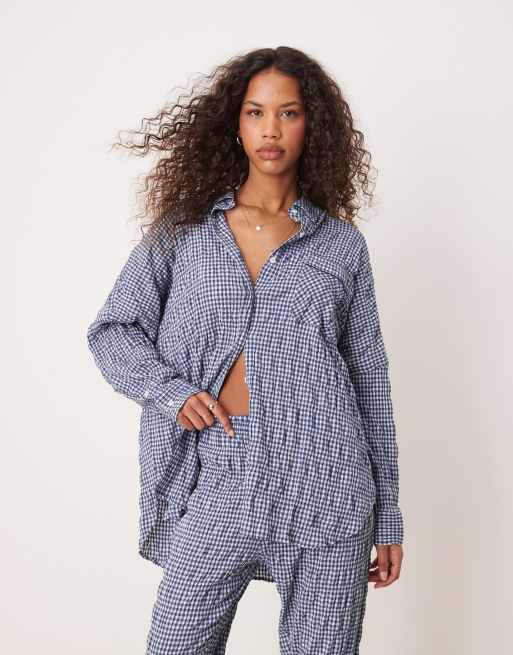 Free People – Granatowa teksturowana koszula od piżamy – Część zestawu