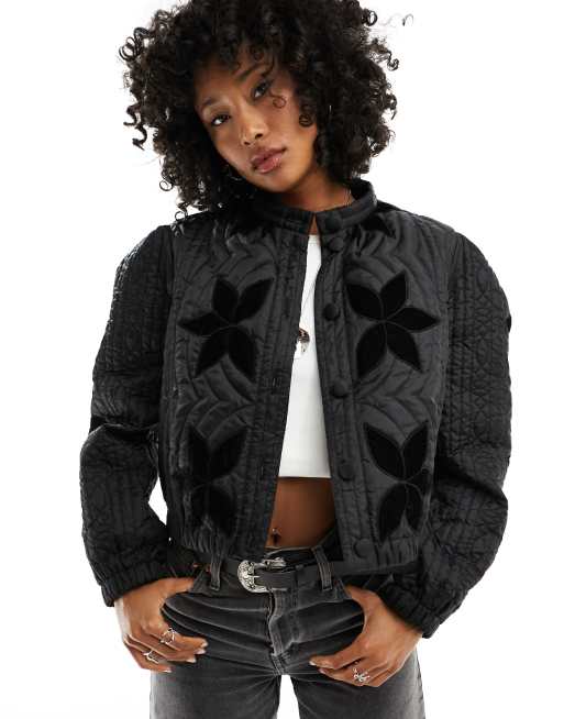 Free People – Pikowana aksamitna kurtka w czarnym kolorze