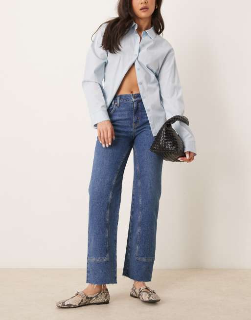 Free People – Risk Taker – Niebieskie jeansy z prostymi nogawkami i średnim stanem