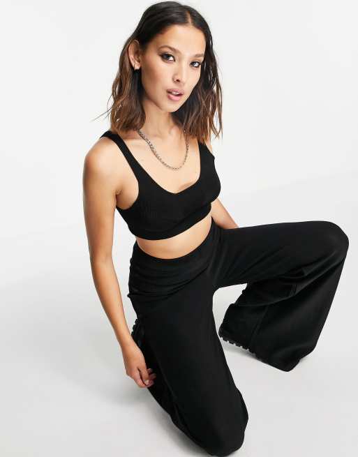 Free People – Show Off – Czarny zestaw z dżerseju z topem i spodniami