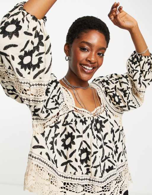 Free People – Soleil – Luźny top w kolorze kości słoniowej z haftowanym wzorem