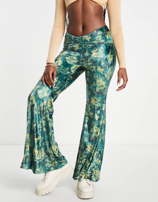 Free People – Szmaragdowozielone aksamitne dzwony z niskim stanem ze wzorem paisley