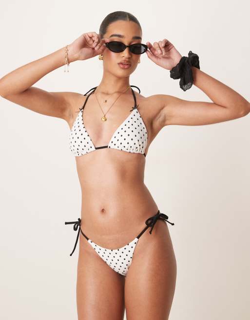 Free Society – Biały, wiązany po bokach dół od bikini w groszki