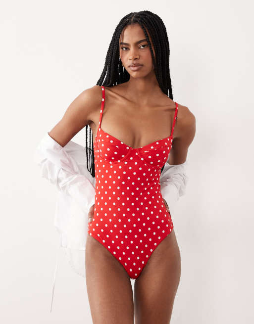 Free Society – Czerwony strój kąpielowy z fiszbinami w groszki
