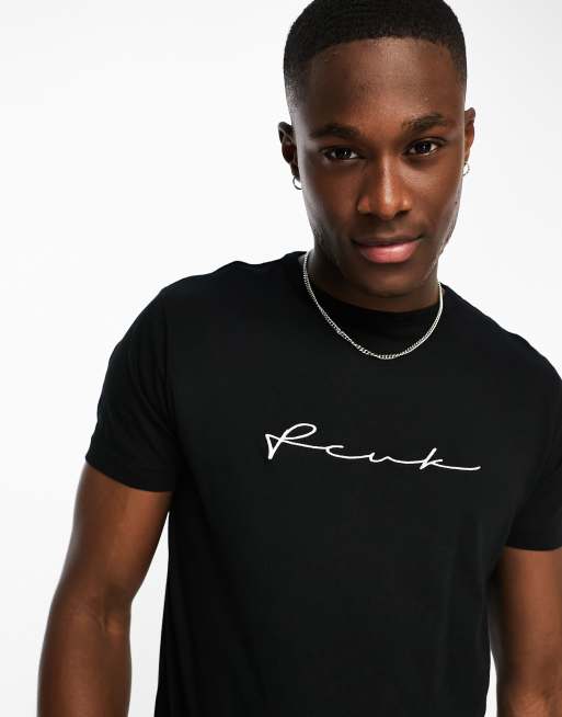 FCUK – Czarny T-shirt z logo po środku