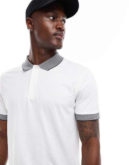 French Connection – Biała koszulka polo z kontrastowym kołnierzykiem w paski