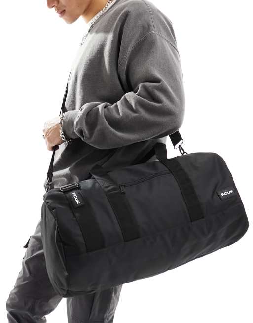 French Connection – Czarna, nylonowa torba podręczna z logo FCUK