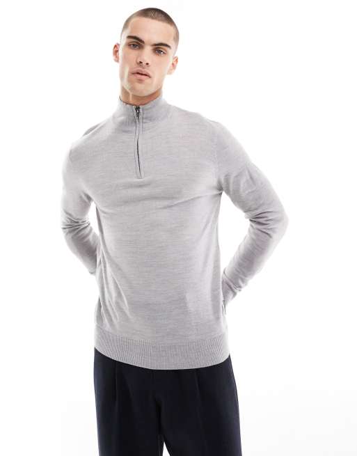 French Connection – Jasnoszary, miękki w dotyku sweter z suwakiem pod szyją