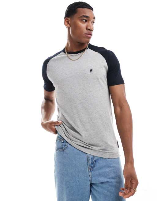 French Connection – Reglanowy T-shirt w jasnoszarym melanżowym i granatowym kolorze