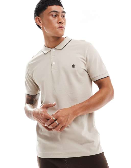 French Connection – Szarobeżowa koszulka polo z lamówką