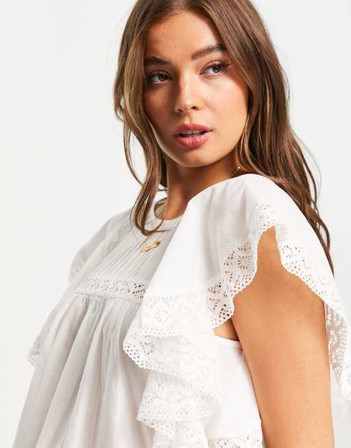 French Connection – Biały luźny top z haftowanym wykończeniem