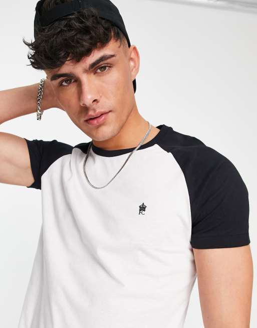 French Connection – Biały T-shirt z czarnymi rękawami raglanowymi