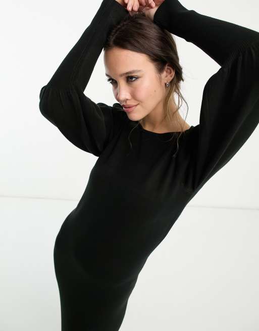French Connection – Czarna dzianinowa sukienka midi z obszernymi rękawami