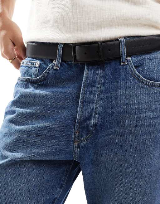 French Connection – Dwustronny skórzany pasek w kolorze czarnym i brązowym z kwadratową klamrą
