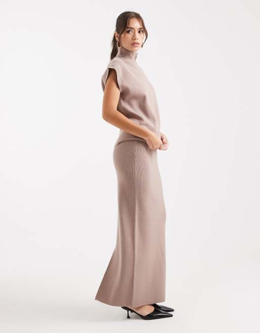 French Connection – Dzianinowa spódnica midi tuba w kolorze brązowoszarym, część zestawu