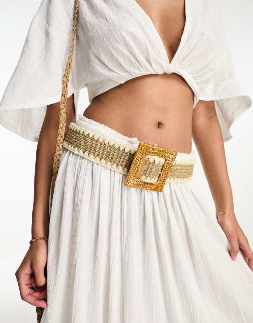 French Connection – Pasek z tkaniny w naturalnym kolorze z kwadratową klamrą