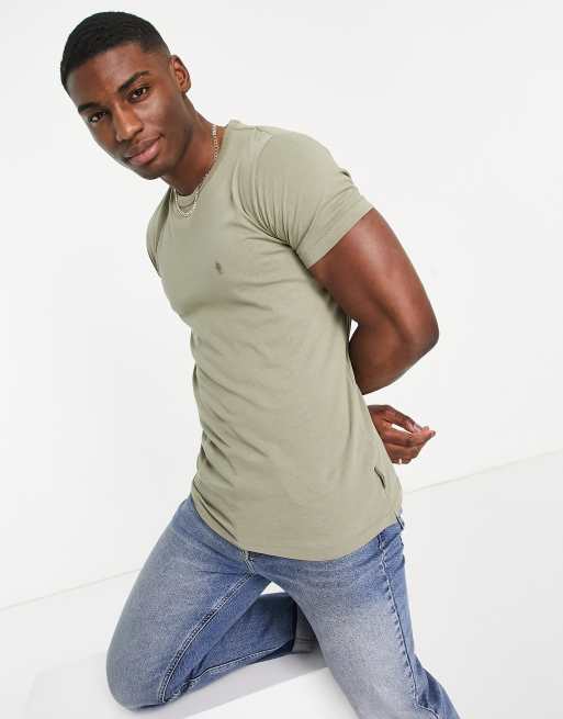 French Connection – T-shirt w jasnym odcieniu khaki z okrągłym dekoltem