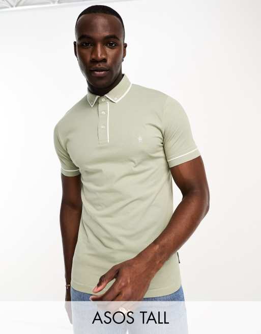 French Connection Tall – Szałwiowa koszulka polo z lamówką