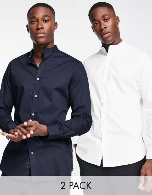 French Connection – Zestaw 2 koszul ze stójką w kolorach białym i granatowym