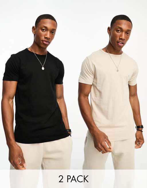 French Connection – Zestaw 2 T-shirtów z okrągłym dekoltem w kolorach czarnym i kamiennobeżowym