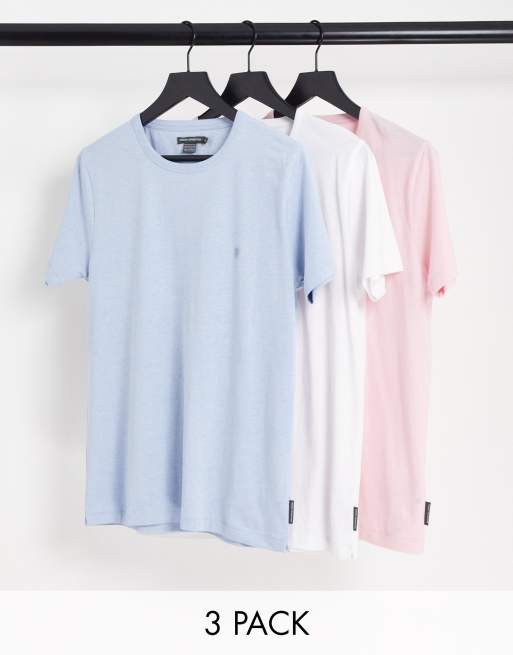 French Connection – Zestaw 3 par T-shirtów z okrągłym dekoltem w kolorze błękitnym, różowym i białym