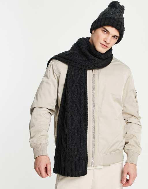 French Connection – Zestaw z czapką i szalikiem z warkoczowym splotem w kolorze granatowym i khaki