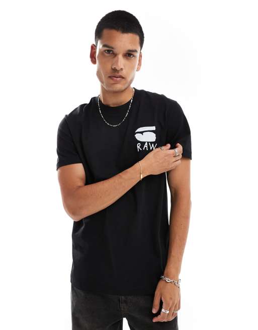 G-Star – Czarny T-shirt z nadrukiem z motywem burgera na piersi i plecach