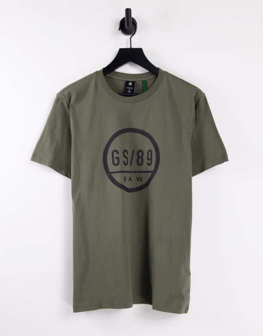 G-Star – T-shirt w kolorze khaki z grafiką GS89