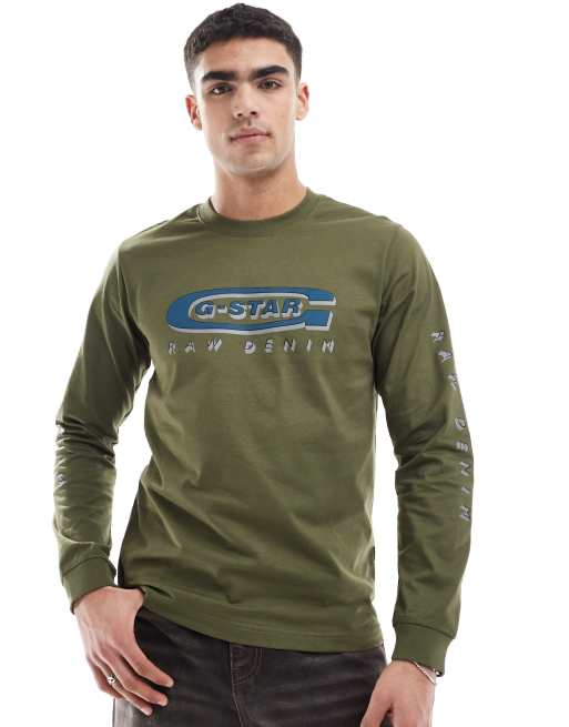 G-Star – T-shirt z długimi rękawami i logo Old Skool w kolorze khaki
