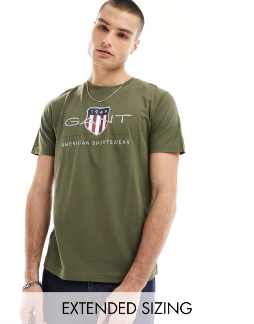 GANT – Archive – T-shirt w zielonym kolorze khaki z logo z tarczą
