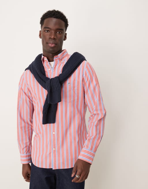 GANT – Czerwona popelinowa koszula o regularnym kroju w paski z logo