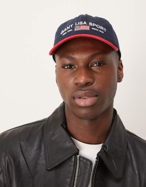 GANT – Granatowa baseballowa czapka z daszkiem i logo z flagą USA