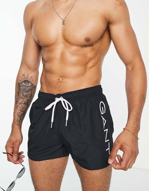 GANT – Lekkie czarne szorty kąpielowe z logo z boku