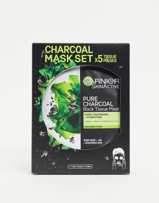 Garnier – Oczyszczająco-nawilżająca maska w płacie z węglem i algami na rozszerzone pory (5 sztuk)