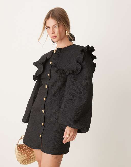 Ghospell – Czarna sukienka mini z kołnierzem oversize